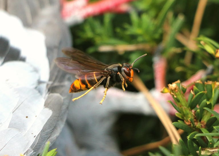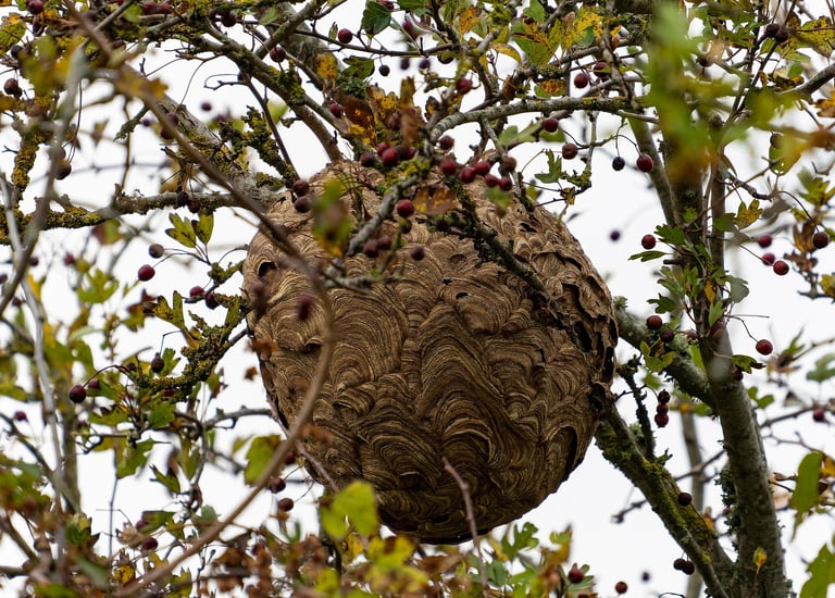 Nous proposons une solution durable et efficace contre les frelons et guêpes. Ces insectes connus pour leurs piqures douloureuses, peuvent rapidement devenir une nuisance, contaminer les zones de productions alimentaires et représenter un danger pour les animaux domestiques comme pour les personnes. En cas de nid ou d'infestation, n'attendez pas: faites appel à notre expert pour une intervention rapide et sécurisée.